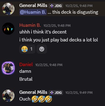 And if I think that some form of “deck ownership” exists, but I can’t quite pin down where it starts or ends, or what criteria it has to check off before I can definitively say, “Yes, this deck idea belongs to X, Y, or Z”, it just leaves me in this strange place where I’m not sure if I should be offended or not. Are they stealing from me? Are they stealing from Beton? Are they doing something that’s totally fine? I don’t know. What does “deck ownership” even mean in the first place? What is it worth?